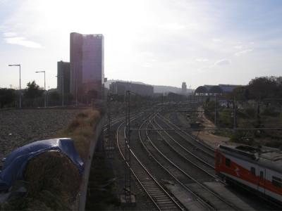 die schienen zur estacio de frança, mit dem neuen miralles prachtbau im hintergrund. miralles war der haus- und hofarchitekt barcelonas (www.mirallestagliabue.com), ich glaube seine frau baut jetzt weiter. die modelle sehen immer recht interessant aus, besonders von oben. anscheinend gibt es impresionante modelle aus holz. ich hab noch keines in wirklichkeit gesehen. aus meiner sicht scheitern die realen umsetzungen jedoch an den echten menschlichen grössenverhältnissen. und daran, dass mensch im normalfall keinen helikopter besitzt, um sich die häusln von oben anzuschaun.