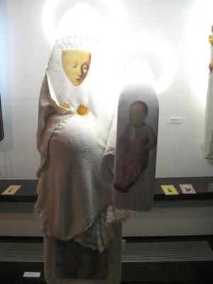 und diese madonna mit kind bitte (ich fands grossartig, also göttlich) aus gebrauchten bügelbrettern.