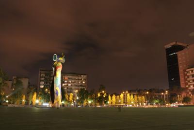 und folgendes bild ist copyright michael niemetz, aber ich bin drauf, schemenhafterweise, deswegen zeig ichs her. die skulptur (is übrigens riesig) heisst Frau mit Vogel und ist von miró.