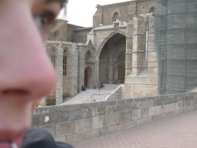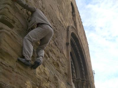 am weg dorthin wollt ich schnell mal eine kirche beklettern. sandstein. ui, broeckelt sehr. hihi.
